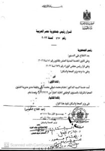 أصدر الرئيس عبدالفتاح السيسي، قرار جمهورى رقم 467 لسنة 2022، بمد خدمة الدكتور هشام محمد شوقى مسعود، فى وظيفة مدير مديرية الصحة بمحافظة الشرقية، اعتباراً من ١٩/ ٠٧/ ٢٠٢٢، ولمدة عام، وعلى وزير الصحة والسكان تنفيذ القرار.