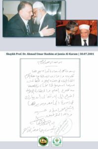 وقال رئيس المنظمة العالمية لخريجي الأزهر الشريف ببريطانيا، ان فضيلة الامام كان داعما لجامعة الكرم الاسلاميه في بريطانيا، لأداء دورها العلمي في نشر أصول الدين الإسلامي ببريطانيا والعالم، ووقع كلمة شكر للجامعة ودورها في خدمة الإسلام والمسلمين، وأضاف ان الوفد قام بزيارة مصر مخصوص لهذه الزيارة المباركة، لهذا الامام المجدد استاذ الحديث النبوي الشريف، المعروف في العالم .